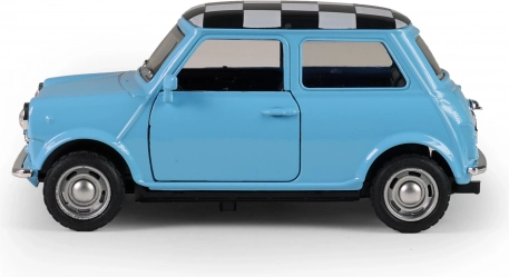 Descoperiți emblematicul Mini Cooper într-o execuție de calitate metal/plastic. Datorită mecanismului cu inerție, este suficient să-l trageți și să-l eliberați – mașina pornește sprinten înainte. Execuția detaliată a caroseriei, elementele cromate și modelul în carouri al acoperișului subliniază aspectul de colecție al modelului.