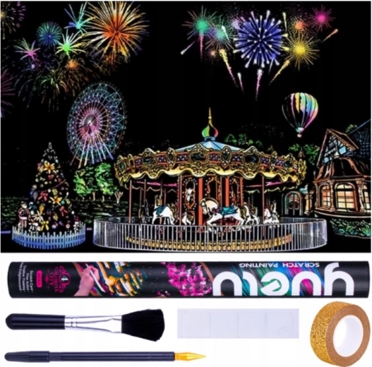 Bucurați-vă de distracție cu o imagine de zgârâiat unică, care vă va duce în lumea parcului de distracții. Ideal pentru copiii și adulții care iubesc creativitatea.