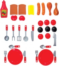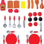 Grătarul pentru copii de la MOCHTOYS este alegerea perfectă pentru micii bucătari. Grătarul complet echipat include diverse accesorii precum bucăți de pui, ketchup, cârnați, roșii, produse de panificație, cărbune, farfurii și tacâmuri. Plastic de înaltă calitate asigură o durată lungă de viață și siguranță pentru copii.