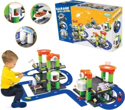 Garajă Mega cu Trei Etaje Mochtoys este o jucărie grozavă pentru copii, care oferă o structură modernă cu două garaje interconectate și echipament bogat pentru joacă distractivă.