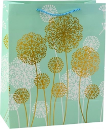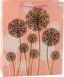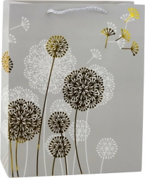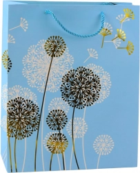 Motivul cu păpădii, cu detalii aurii și albe, conferă un aer sofisticat și oferă oricărui cadou un aspect deosebit.