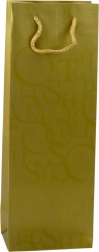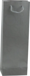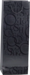 Pungă cadou elegantă pentru sticlă din hârtie de calitate, cu design minimalist și model tipografic în relief. Are mânere împletite din șnur, rezistente pentru transport în siguranță și este potrivită pentru vin, spumante și limonade de casă. Disponibilă în 4 culori luxoase: negru, argintiu, grafit și auriu.