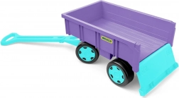 Remorcă robustă pentru copii din gama Gigant, în combinație de culori mov și turcoaz, care poate transporta până la 60 kg. Datorită mânerului de tracțiune, poate fi folosită ca cărucior de tras sau ca remorcă pentru alte vehicule din serie. Fabricată din plastic de calitate, rezistent, potrivită pentru joacă în interior și în exterior.