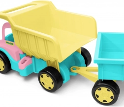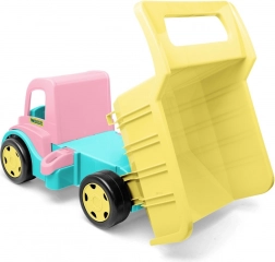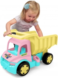 Mare camion basculant pentru copii GIGANT în culoare roz‑crem, oferă o construcție robustă cu o capacitate de încărcare de până la 150 kg, benă rabatabilă cu prindere comodă și două cuple pentru tractare sau atașarea unei remorci. Ideal pentru joacă acasă și în aer liber, dezvoltă motorica, coordonarea și imaginația copiilor.