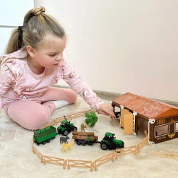 Copiii își dezvoltă motricitatea fină, vocabularul și imaginația. Joaca cu figurinele și vehiculele îi motivează să spună povești și să învețe despre viața la fermă.