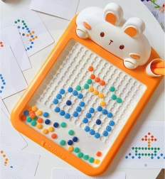 Tabla magnetică MagPad este un ajutor excelent pentru dezvoltarea creativității și a abilităților motorii ale copiilor. Setul include 2 pixuri magnetice în formă de morcov și 70 de nasturi magnetici, pe care copiii îi pot folosi pentru a crea propriile modele și mozaicuri. Datorită principiului de joc, operarea este simplă, ceea ce sprijină independența și creativitatea copilului.
