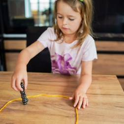 Șnurul flexibil creează rapid un „teren de joc” oriunde. Datorită lui, jocul rămâne clar atât pe masă, cât și în deplasare.