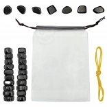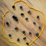 - 20 de pietricele magnetice de forme diferite, șnur galben, săculeț textil, instrucțiuni