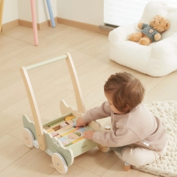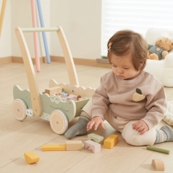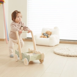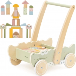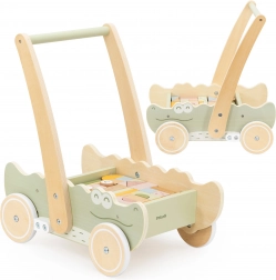Experimentați bucuria primilor pași cu căruciorul în formă de crocodil. Structura sa din lemn stabil oferă suportul necesar și permite copiilor să exploreze în siguranță lumea din jur. Căruciorul este echipat cu un mâner ergonomic, care ajută copiii să-și mențină echilibrul.