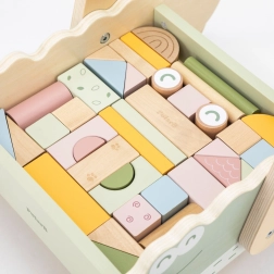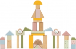 Formele variate și culorile pastelate ale blocurilor încurajează creativitatea și învățarea culorilor și formelor.