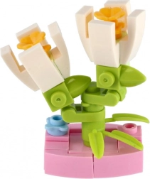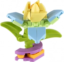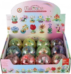 Acest mic set de construcție adorabil transformă fiecare capsulă într-o surpriză plină de culori. Fiecare floare este alcătuită din câteva piese care se potrivesc perfect, iar după asamblare rezultă un model decorativ de aproximativ 6 cm. Datorită diferitelor tipuri de flori, copiii își pot construi propria „grădină de flori”.