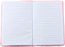 Interiorul caietului conține pagini liniate, ideale pentru note, jurnal, inspirații poetice sau schițe. Datorită dimensiunilor de 22 x 16 x 3 cm, este portabil și se încadrează ușor într-un rucsac, geantă sau etui pentru creioane. Textura sa moale și pufoasă oferă o plăcere extraordinară la fiecare atingere!