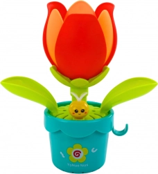 Prin umplerea stropitorii incluse și udarea florii, petalele încep să se deschidă și să dezvăluie o creatură galbenă simpatică. Acest moment impresionant va aduce cu siguranță un zâmbet pe fața fiecărui copil și îl va încuraja să continue joaca. Această jucărie nu doar oferă o distracție grozavă, dar dezvoltă și coordonarea mâinii și ochiului, răbdarea și înțelegerea relațiilor cauzale.