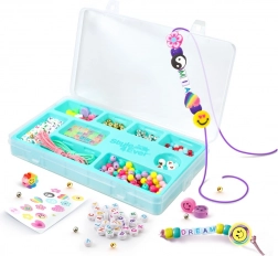 Descoperă lumea creativă a bijuteriilor cu mini setul Style4Ever brățări boho. În pachet găsești o selecție variată de mărgele, pandantive și șnururi, cu ajutorul cărora îți vei crea cu ușurință brățări după propria imaginație. Mărgelele cu litere care luminează oferă fiecărei piese o notă unică și îți permit să creezi inscripții personale.