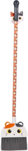 Set adorabil pentru micii ajutoare din gospodărie: măturică și făraș pentru copii cu motiv de pisică în culoare portocalie. Ușor, rezistent și sigur pentru copii de la 3 ani, sprijină autonomia și responsabilitatea în timpul curățeniei. Ideal pentru mici murdării în camera copilului și în bucătărie.