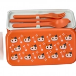 Practică și adorabilă, caserola de prânz portocalie cu motiv pisicuță este ideală pentru birou, școală sau călătorii. Include tacâmuri integrate – lingură și furculiță. Are capacitate pentru o porție întreagă pe tot parcursul zilei, este potrivită pentru congelator și poate fi încălzită la microunde fără capac (max. 100 °C). Dimensiunile compacte 20 × 10,6 × 10 cm facilitează transportul în geantă sau rucsac.