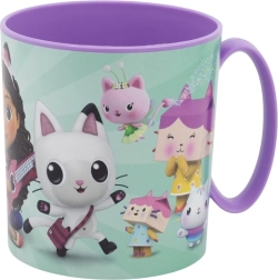 Cana practică din plastic cu îndrăgitul motiv Căsuța magică a lui Gabi este o alegere ideală pentru utilizarea zilnică. Această cană cu volum de 390 ml este realizată dintr-un material rezistent, care suportă lovituri și căderi fără a se deteriora.