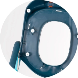 Părinții vor aprecia curățarea facilă, montarea rapidă și depozitarea compactă. Suportul reglabil pentru picioare crește odată cu copilul și susține poziția corectă. Construcția universală se potrivește pe majoritatea vaselor de toaletă standard.