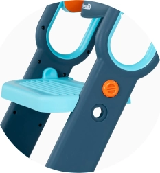 Treapta largă antiderapantă, picioarele cu aderență și mânerele solide oferă copiilor siguranță la fiecare pas și în timpul șederii.
