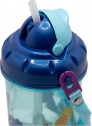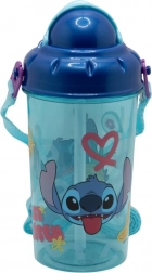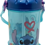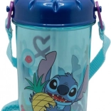 Sticla stilată pentru copii cu motiv STITCH oferă băut confortabil datorită paiei integrate, capacului anti-vărsare și curelei practice de purtare. Volumul de 465 ml și materialul fără BPA o fac alegerea ideală pentru școală, excursii și timpul liber.