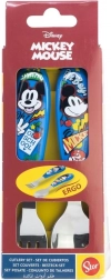 Ajutor ideal pentru cei mici care învață să utilizeze tacâmuri adevărate. Setul conține furculiță și lingură rotunjite, concepute pentru o utilizare ușoară și sigură. Mânerele decorative cu design Mickey Mouse vor atrage orice copil și vor face din servirea mesei o experiență plăcută.