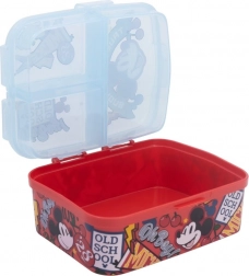 Descoperiți cutia multifuncțională de gustare Mickey Mouse, care îndeplinește toate cerințele părinților moderni și ale copiilor lor. Cutia este realizată din material durabil, capabil să reziste la căderi și lovituri accidentale în timpul utilizării zilnice. Cu trei compartimente separate, puteți depozita cu ușurință sandvișuri, legume sau fructe și chiar dulciuri.