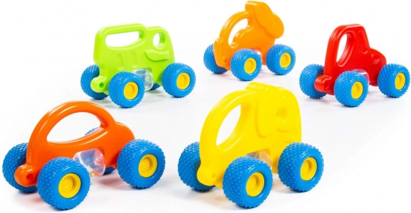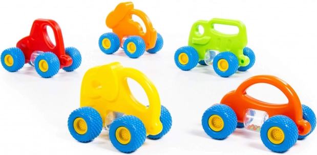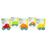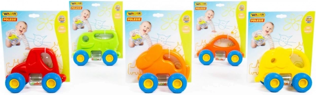 Mașinuța adorabilă în formă de iepuraș este concepută pentru un joc sigur și stimulant pentru cei mai mici copii. Datorită roților din cauciuc cu profil pronunțat, deplasarea este silențioasă și lină pe diferite suprafețe. Recipientul cilindric cu biluțe colorate zornăie plăcut în timpul mișcării și dezvoltă percepția auditivă.