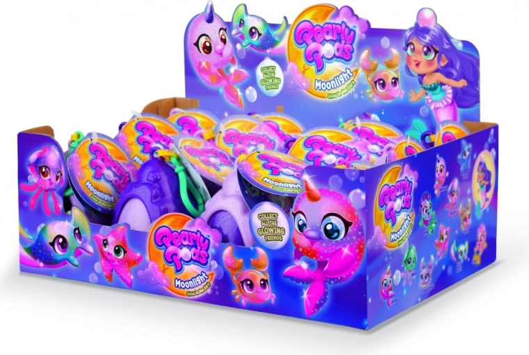 Prieteni luminoși Pearly Pods Moonlight sunt figurine de pluș foarte moi, în culori adorabile, ascunse într-o husă lucioasă și atrăgătoare. Este suficient să fie expuse la lumină, iar în întuneric se vor aprinde cu o lumină delicată, oferind copiilor un sentiment de siguranță și transformând camera într-un loc fermecat.