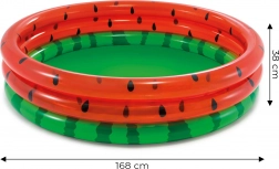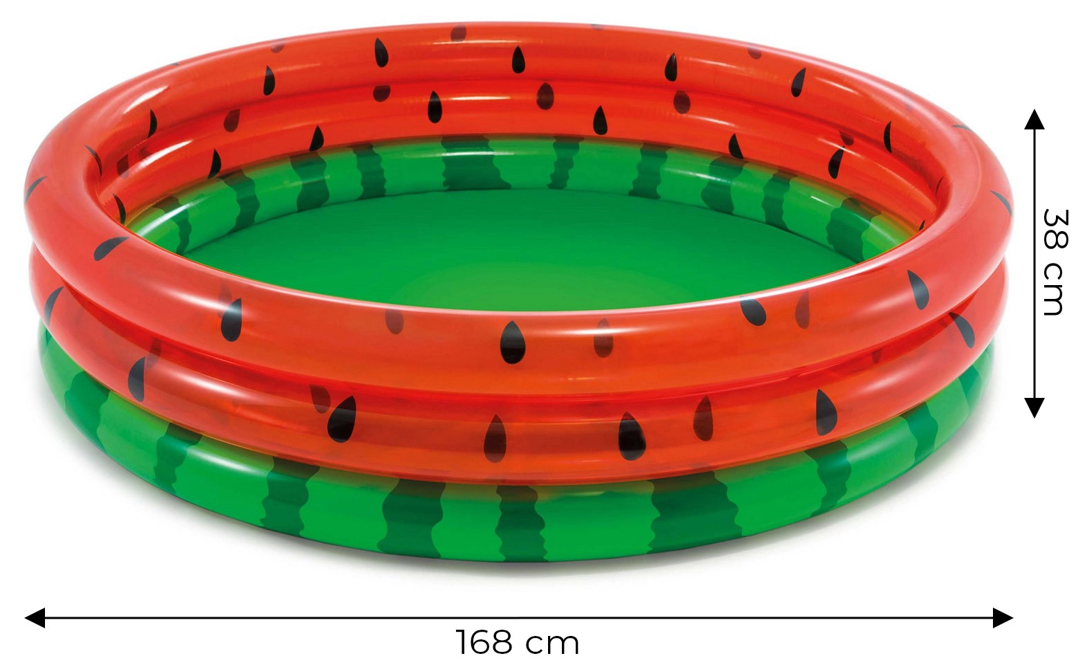 Piscina stilată, cu aspect de pepene suculent, aduce instant o atmosferă de vară în grădina dvs. Datorită celor trei inele gonflabile din PVC de calitate (0,23/0,18 mm), este stabilă, confortabilă și rezistentă la uzura obișnuită. Înălțimea apei de 18 cm este prietenoasă pentru copiii mai mici și le oferă părinților un sentiment sporit de siguranță.
