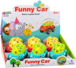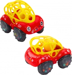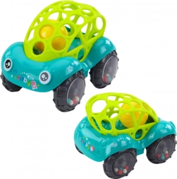 Mașinuță zornăitoare este o jucărie senzorială ideală pentru copilul dumneavoastră. Ajută la dezvoltarea dexterității manuale și a simțurilor copiilor, datorită zornăitoarelor integrate în roți și bilei rotative, care stimulează auzul și văzul copilului.