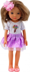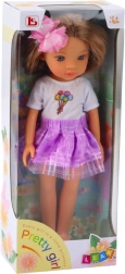 Păpușa Pretty Girl poartă un tricou alb cu imprimeu colorat de baloane, care se potrivește perfect cu fusta mov din tulle cu o sclipire delicată. Ținuta este completată de pantofii roz care oferă un aspect stilat și vesel. Hainele detașabile permit schimbarea ținutei păpușii și inventarea de noi outfit-uri. Datorită brațelor, picioarelor și capului mobil, păpușa este ușor de manevrat și poate fi așezată, mișcată sau folosită în diverse scenarii.