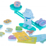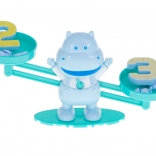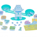 Acest set educațional cu cântar-hipopotam îi motivează pe copii să descopere lumea numerelor într-un mod natural și distractiv. Fiecare mic hipopotam corespunde valorii cifrei 1, doi hipopotami cântăresc cât cifra 2 etc., astfel încât copiii își însușesc cu ușurință principiile adunării, comparării și echilibrului.