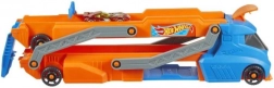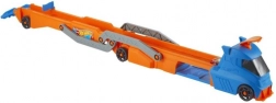 Pregătiți-vă pentru curse uimitoare și cascadorii cu camionul Hot Wheels. Acest camion imens poate încărca până la nouă mașinuțe, iar datorită platformei extensibile la 76 cm, le veți trimite ca fulgerul. Cabina servește ca dispozitiv de lansare și permite mașinuțelor să plece în curse nebunești spre noi aventuri.