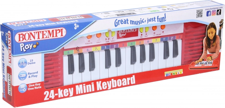 Descoperiți bucuria muzicii cu clapele electronice mini de la Bontempi, pe care copilul dumneavoastră le va îndrăgi imediat. Acest instrument muzical este echipat cu o serie de funcții utile care facilitează și fac plăcute primele experiențe muzicale: