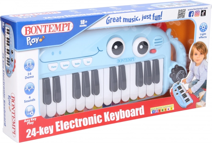 Acest pian electronic albastru de la marca Bontempi este echipat cu 24 de clape, ceea ce facilitează începutul călătoriei în lumea muzicii. 24 de melodii demo oferă inspirație și suport pentru a învăța noi melodii. Cu 4 sunete diferite, puteți experimenta cu diferite tonuri și efecte. Efectele de lumină îmbogățesc și mai mult experiența vizuală a cântatului.