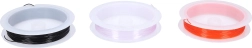 Fir elastic universal pentru mărgele, pentru realizarea bijuteriilor și decorațiunilor. Diametru 0,6 mm, lungime 7 m și 9 variante de culoare oferă spațiu pentru creativitate. Firul este rezistent și elastic, se lucrează ușor cu el și se înșiră ușor.