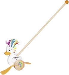 Rățușca curcubeu Lou este o jucărie clasică de împins/tras care îi motivează pe copii să se miște. Datorită culorilor vii și rulării line, aduce bucurie mersului și, în același timp, dezvoltă siguranța pașilor și coordonarea mâinilor și picioarelor.