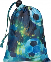 Poncho de ploaie pentru copii, stilat, cu glugă și cozoroc, pentru purtare zilnică la școală și în excursii. Materialul ușor și impermeabil asigură confort pe timp de ploaie, elementele reflectorizante sporesc siguranța, iar croiala gândită permite purtarea confortabilă chiar și peste rucsac. Include un săculeț practic cu șnur, asortat cu designul cu tematică de fotbal.