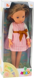 Păpușa Pretty Girl este atracția principală pentru orice fetiță datorită chipului său frumos modelat cu un zâmbet delicat și ochi mari. Are păr moale și plăcut la atingere, care poate fi pieptănat și stilizat. Este îmbrăcată în rochie roz cu dungi albe, completată de mâneci albe și o fundiță castanie decorativă în talie. Această combinație elegantă este completată de pantofi albi clasici. Îmbrăcămintea este detașabilă, permițând jocul de schimbare a hainelor și crearea propriilor creații de modă.