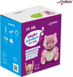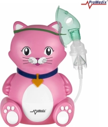 Un inhalator pentru copii, în formă de pisicuță, de la PROMEDIX, este un nebulizator cu compresor destinat funcționării continue. Oferă zgomot redus, control ușor cu un singur buton și design sigur, fără muchii ascuțite, fiind ideal atât pentru micii pacienți, cât și pentru restul familiei.
