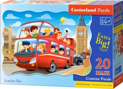Descoperiți puzzle-ul MAXI de podea cu motivul autobuzului londonez, ideal pentru copiii mici. Datorită pieselor mari și marginii conturate, puzzle-ul se asamblează ușor, dezvoltă motricitatea fină, răbdarea și imaginația spațială. Dimensiunea după asamblare este de aproximativ 59 × 40 cm.