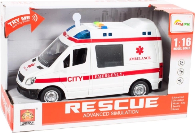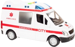 Ambulanța pentru copii, realistă, la scara 1:16, le oferă celor mici o experiență autentică de misiune de salvare. La apăsarea butoanelor de pe acoperiș se aprind girofarele și se aud sunete de motor, sirenă și claxon, făcând jocul și mai palpitant.
