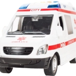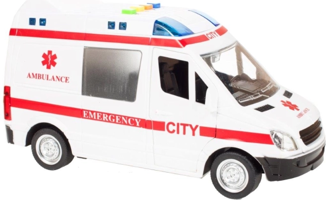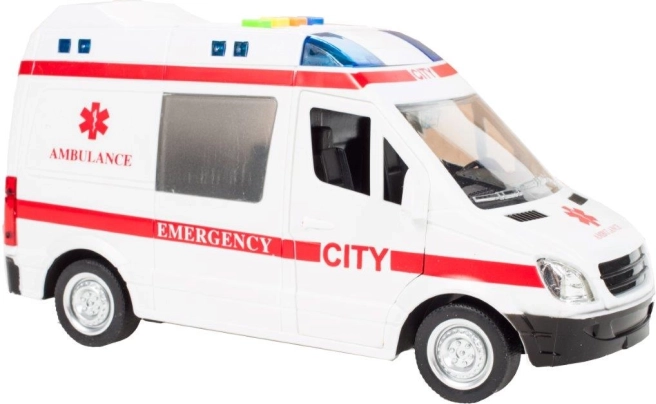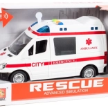 La apăsarea butoanelor colorate, ambulanța activează efecte luminoase și sunete de motor, sirenă și claxon, care transformă fiecare cursă într-o intervenție plină de acțiune.