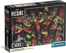 Descoperiți distracția și provocarea asamblării cu acest puzzle de calitate de la marca Clementoni. Imaginea asamblată are dimensiunile de 84,5 x 59,5 cm și imprimarea sa precisă și culorile vibrante garantează că veți putea savura fiecare detaliu. Acest motiv specific reprezintă o colecție unică a celor mai îndrăgiți ticăloși Disney, ceea ce face ca acest puzzle să fie o piesă unică pentru orice fan al filmelor de animație.