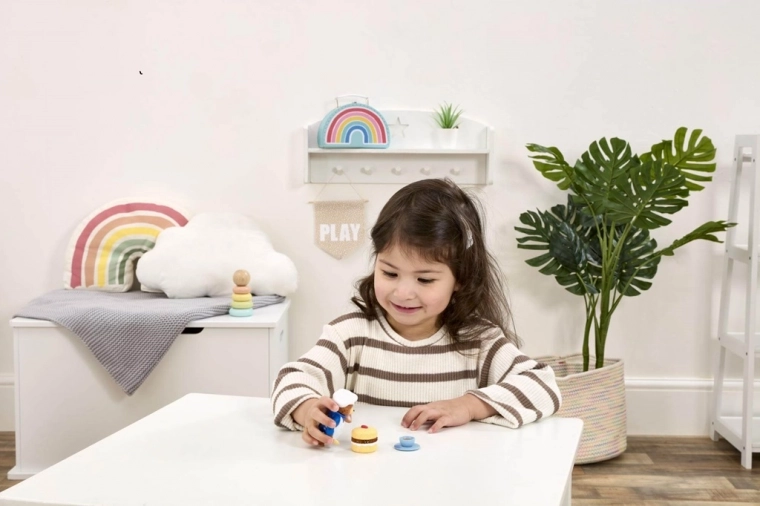 Ceașca de ceai și tortul extind posibilitățile de joc și stimulează imaginația, precum și dezvoltarea motricității fine.