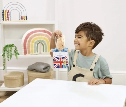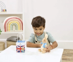 Jucăria este realizată din materiale sustenabile, selecționate cu grijă și de înaltă calitate și vine într-o sacoșă cadou elegantă cu motiv Union Jack – gata pentru a fi oferită imediat.