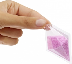 Presară „praf de zână” colorat, adaugă apă cu pipeta și creează un model lucios original, pe care, după uscare, îl prinzi de păpușă.