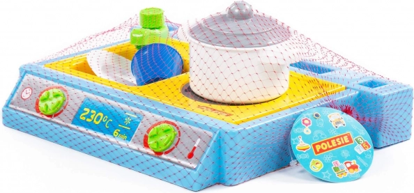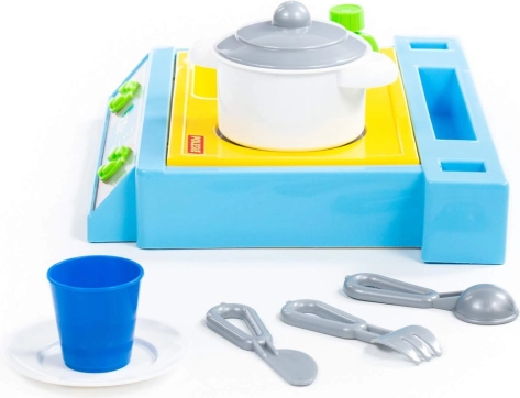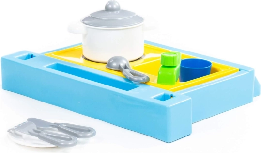 Set mic de masă, care include chiuvetă, plită și set de vase