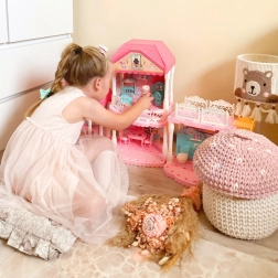 Căsuța pentru păpuși Castle Villa XXL oferă copiilor spațiu generos pentru povești și distracție fără sfârșit. Două etaje independente, cu în total patru camere diferite, sunt atent proiectate și armonizate cromatic. Copiii pot muta mobilierul după imaginație, creând mereu noi scenarii.