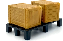 Setul include mici imitații de lăzi din lemn, care amplifică jocul realist.